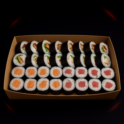 Maki z łososiem, Maki z tuńczykiem, Futomak z węgorzem, Futomak z krewetką