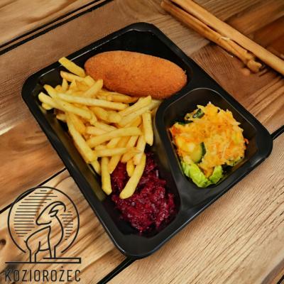 Kotlet de volaille z masłem, ziemniaki lub frytki i surówki