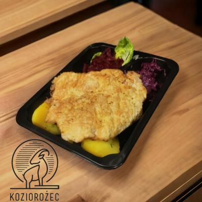Schabowy w cieście jajecznym z dodatkami i surówkami