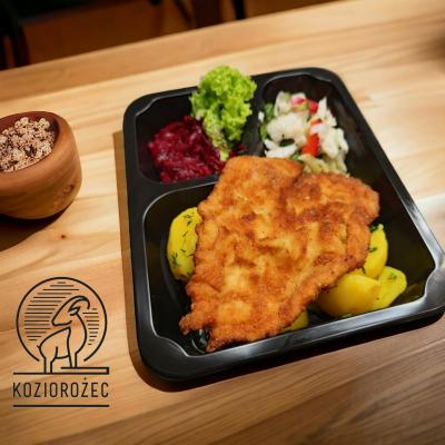 Zestaw obiadowy z kotletem schabowym to prawdziwa klasyka polskiej kuchni w najlepszym wydaniu. Soczysty, panierowany kotlet wieprzowy smażony na złocisty kolor, podawany z domowymi dodatkami do wyboru – ziemniaki lub frytki – oraz świeżymi surówkami. To danie, które smakuje każdemu i nigdy się nie nudzi. Przygotowujemy je ze świeżego mięsa, bez dodatków sztucznych konserwantów, a surówki kroimy na bieżąco, by zachować ich chrupkość i świeżość. Nasz schabowy to porcja sytości i domowego smaku – idealna zarówno na lunch, jak i późny obiad. Zamów na miejscu lub z dowozem i ciesz się tradycyjnym obiadem w przystępnej cenie.