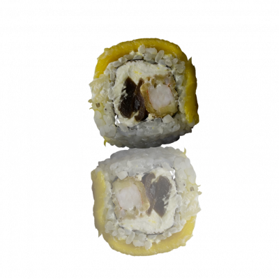czyli pyszna rolka z ryżem, serkiem Philadelphia, chrupiącą krewetką w tempurze, tykwą - to wszystko przykryte kapturkiem z mango :)