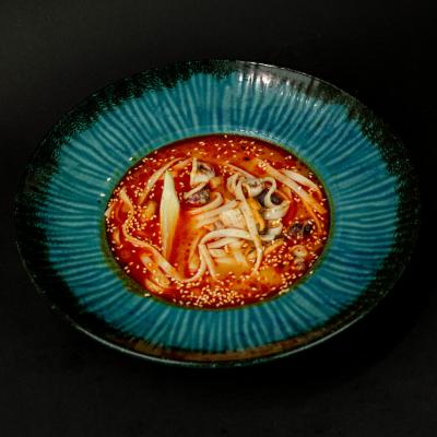 Rosol Tom Yum, mleko kokosowe, mieszanka owoce morza, makaron jajeczny, cytryna, sezam