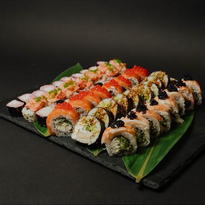 Phila klasyczna * 8, Phila z krewetką *8, Fuji łosoś x10 , Futomaki kurczak x10 , Hosomaki z tuńczykiem pieczonym x10, Hosomaki yasashi x10