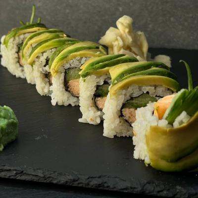 Łosoś grillowany, phila, awokado, ryż, nori.