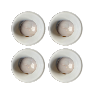 4 sztuki pączków wypełnionych powidłami, oblany klasycznym lukrem.