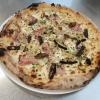 Sos śmietankowy, mozzarella, boczek, podgrzybki, gorgonzola, cebulka smażona, pietruszka