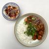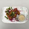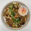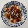 Podajemy z blanszowaną kapustą, tartą rzodkwią i dymką, oraz chrupiącym tempehem.
